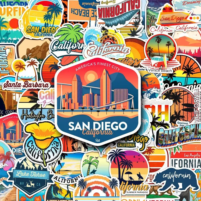Montre ta passion pour le Golden State avec notre pack de 50 autocollants aux illustrations colorées et soignées. Ce lot réunit des stickers aux designs variés directement inspirés de l’univers californien : San Diego, Venice Beach, Santa Barbara, Lake Tahoe, Los Angeles, les palmiers au coucher du soleil, les vagues de surf, les van rétro et les paysages de l’ouest américain. Tu peux décorer ton téléphone, ton ordinateur portable, ta gourde ou ton carnet tout en affichant ton amour pour la Californie et son mode de vie ensoleillé.