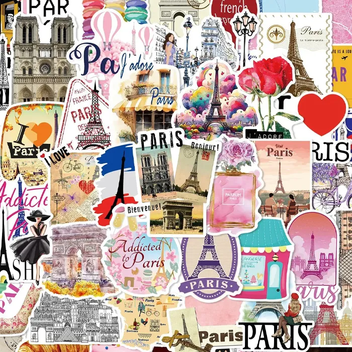 Montre ta passion pour la Ville Lumière avec notre pack de 50 autocollants aux illustrations colorées et soignées. Ce lot réunit des stickers aux designs variés directement inspirés de l’univers parisien : la Tour Eiffel, les macarons, les croissants, les cafés en terrasse, les bouquinistes, les bérets, les monuments emblématiques et bien d’autres icônes qui font le charme unique de Paris. Tu peux décorer ton téléphone, ton ordinateur portable, ta gourde ou ton carnet tout en affichant ton amour pour la capitale française.